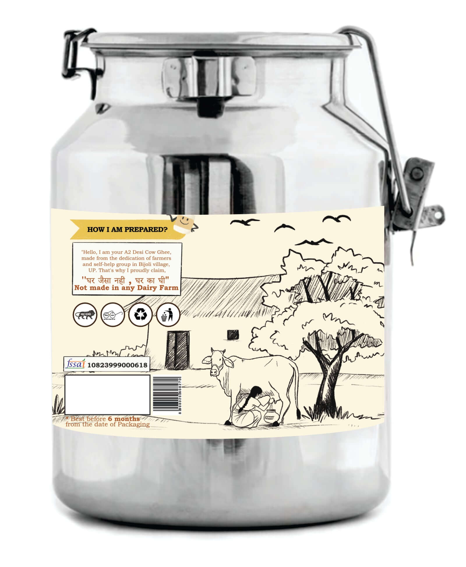 This butter is then slow-cooked under wood fire to remove impurities, leaving us with pure, golden, and aromatic A2 cow ghee.