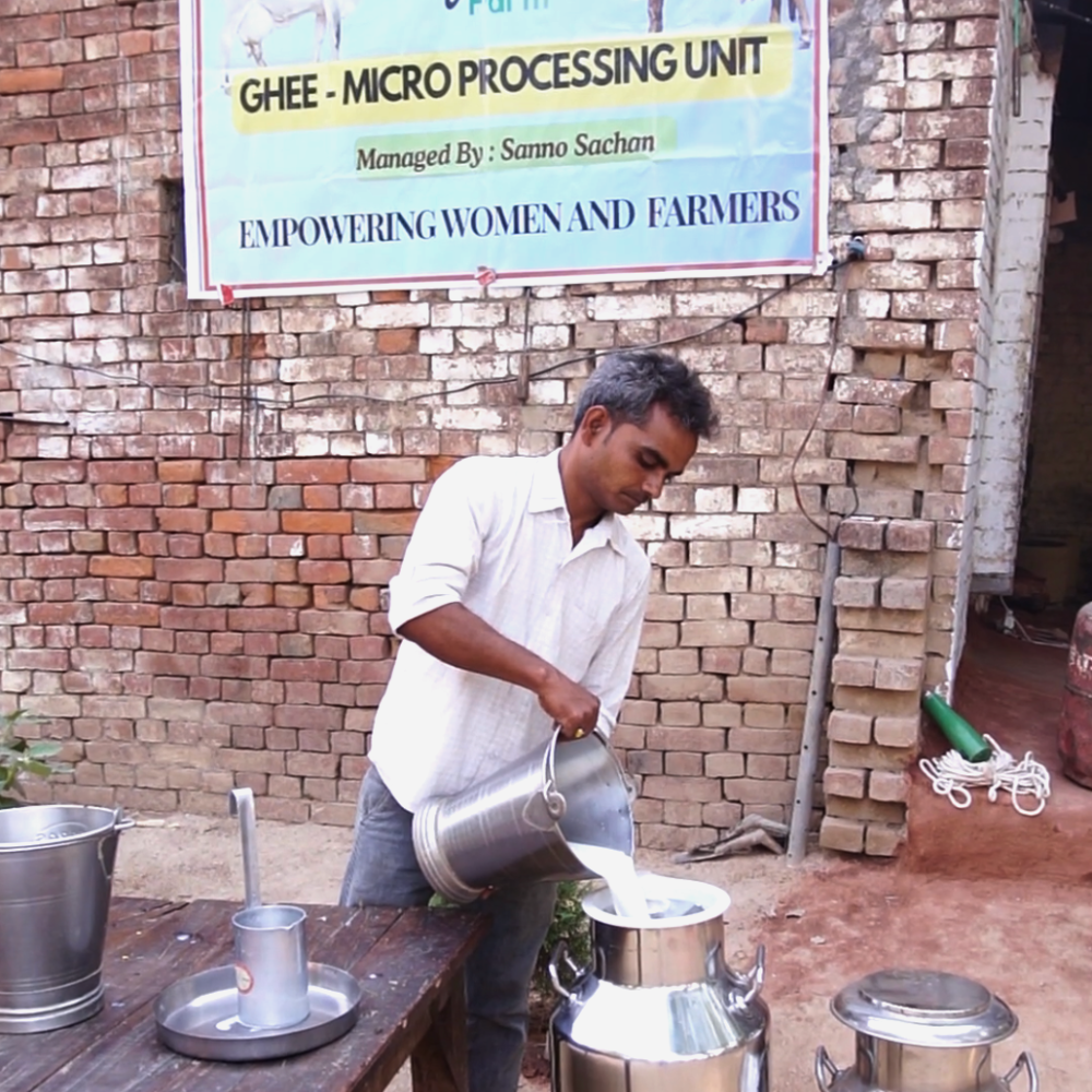 Milk from village farmers is collected fresh at our microunit.