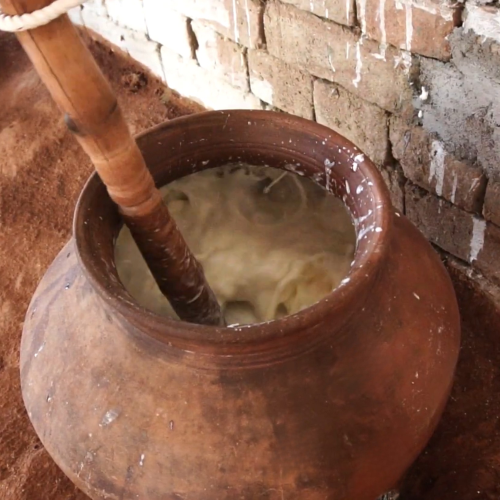After that, the milk is fermented into curd. Once fermented, the curd is hand-churned to get butter.