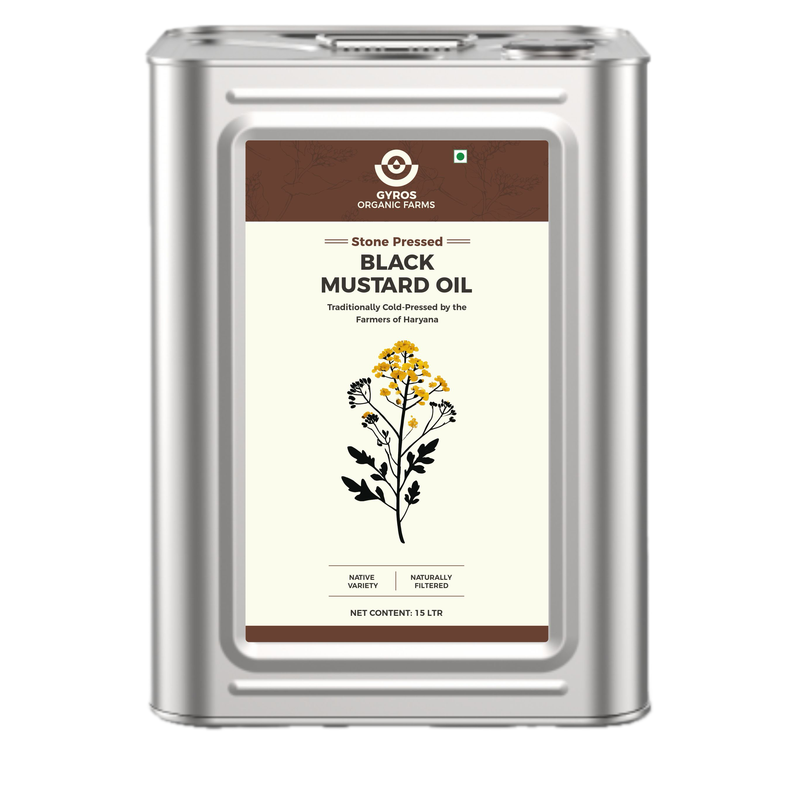 Gyros Cold Pressed Black Mustard Oil is made the true traditional way — using a slow-moving stone Kolhu, just like old Indian villages.