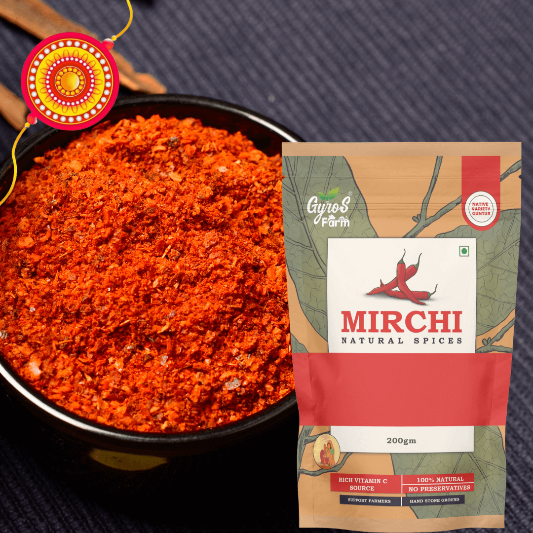 At Gyros Farm, we bring you the locally sourced, hand-ground 100% Organic Mirchi Powder.